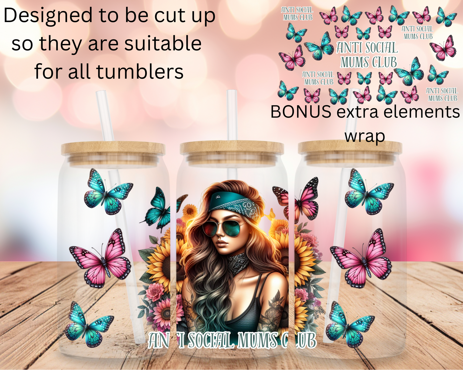 These wraps have been designed so they can be cut up and placed on your tumbler so they are suitable to use on different sized cups!! These designs come with an extra elements wrap so you have extra elements for your tumblers!!