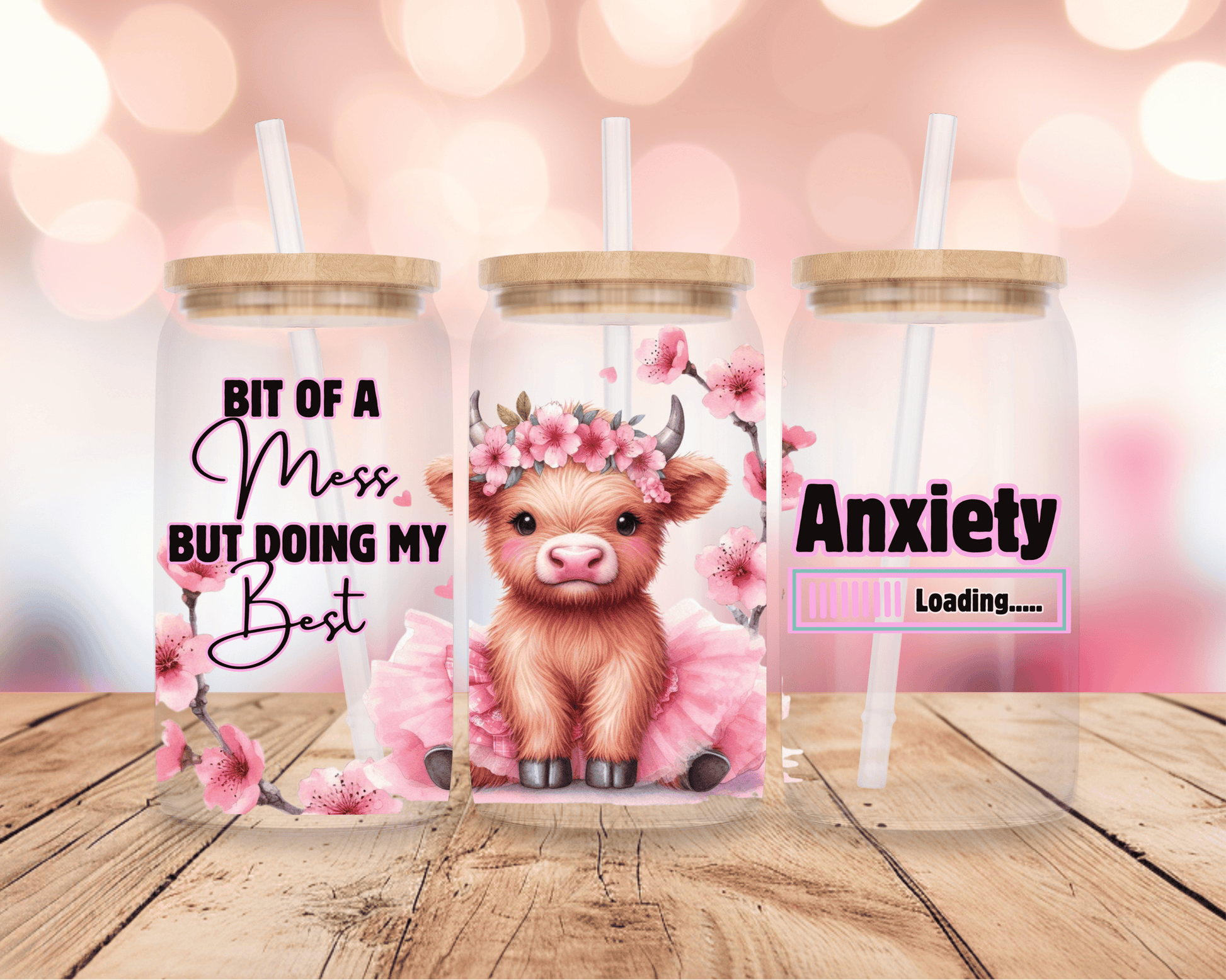 Bit Of A Mess- Pink Highland Cow 16oz DIGITAL DOWNLOAD