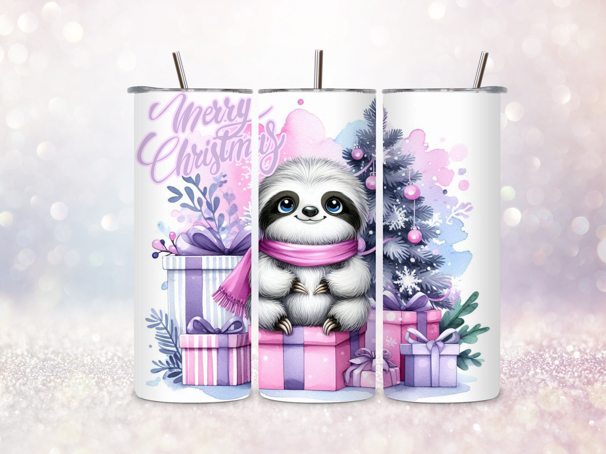 Christmas Sloth 1 Pink 20oz Skinny Straight Tumbler DIGITAL DOWNLOAD